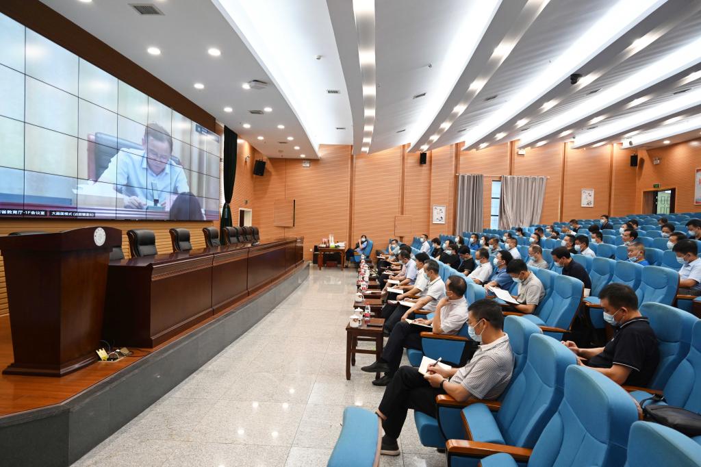 我校在图书馆报告厅设立分会场,全体校领导、疫情防控领导小组办公室全体成员、机关处室负责人、二级学院正职参加会议。