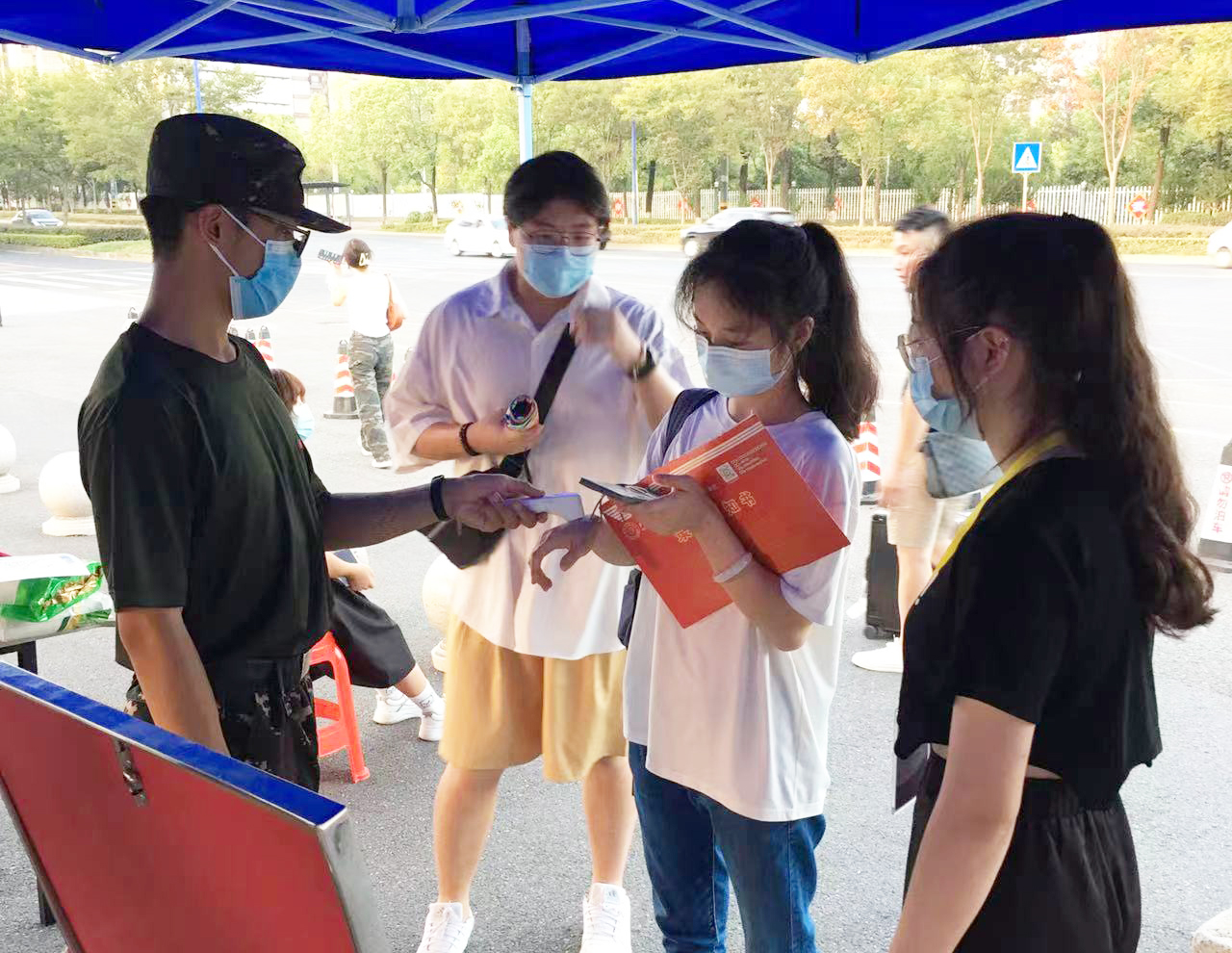 考虑到部分外省学生提前来校的情况,从9月3日下午开始,各二级学院及部分职能处室的工作人员便在迎新现场“严阵以待”,为早到的新生提供贴心周到的“一站式”服务。作为最早来校的20名新生之一,来自江西的大男孩郭定虎对此深有体会,“9月3日一大早我就兴奋地从家出发了,但临到学校却又有几分忐忑:迎新点不会没人办理报到手续吧?来到学校后,首先映入眼帘的便是学长学姐们热情的笑脸,他们争相帮我提行李,带我快速办完入学手续,让我体验到不一样的优待。”
