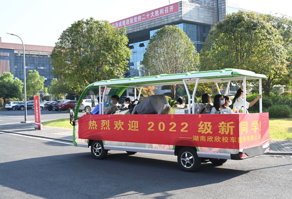 据学校保卫处相关负责人介绍,因学校疫情防控要求,今年所有新生家长不能进入校园,为此学校在校内启用了6辆循环中巴和8辆循环电瓶车,与校外迎新大巴对接接送学生,各路线围绕校园形成一个闭环,最大限度确保了学生身体健康和生命安全。