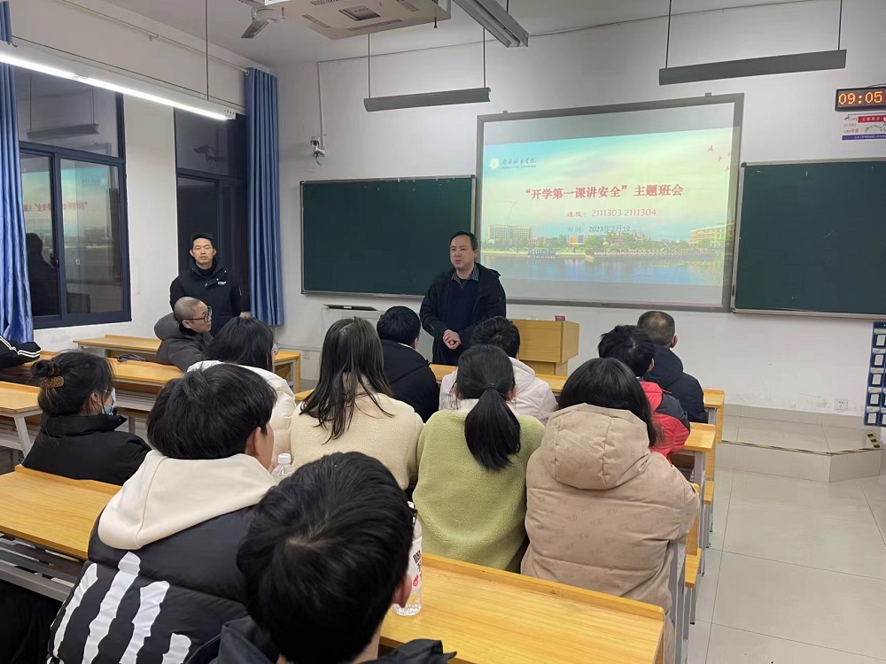 保卫处发布《关于开展春季开学安全大检查和“开学第一课讲安全”活动的通知》,要求各单位和职能部门高度重视,全面开展校园安全隐患自查自纠,以“零容忍"的态度认真检查事故易发的重点场所、关键环节,及时纠正违法违规行为,消除安全隐患。全校所有班级均举行了“开学第一课讲安全”的主题班会。