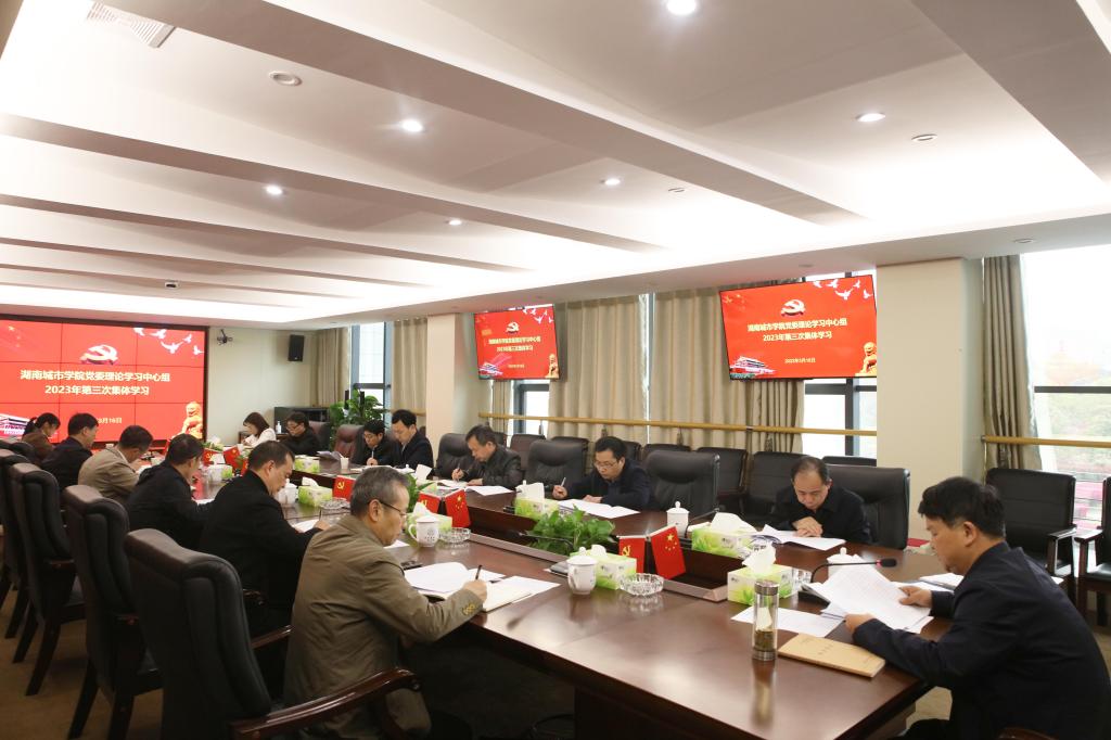 本网讯(通讯员 周文娟)3月16日,学校党委理论学习中心组在办公楼一会议室开展2023年第三次集体学习,传达学习习近平总书记重要讲话精神和全国两会精神。党委理论学习中心组成员参加集体学习,校党委书记汤放华主持会议并讲话。