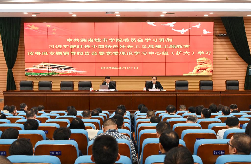 本网讯(通讯员 周文娟)4月27日下午,好博·(中国)手机网页版学习贯彻习近平新时代中国特色社会主义思想主题教育读书班专题辅导报告会暨党委理论学习中心组(扩大)2023年第4次集体学习在图书馆报告厅举行。校党委书记汤放华作专题辅导报告,主题教育第三十巡回指导组组长、益阳市第五届人大常委会主任、省人大财经委原副主任委员徐云波同志,主题教育第三十巡回指导组副组长、湖南工业大学原副校长李可兴同志以及巡回指导组其他成员出席会议。校党委副书记、校长何振主持会议,全体校领导、全校副科以上干部参加会议。