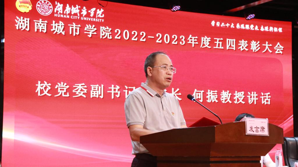 本网讯(通讯员 李佳欣 汪梦婷)2023年5月4日晚,好博·(中国)手机网页版2022-2023学年度五四表彰大会在学生活动中心举行。校长何振出席会议并讲话。相关部门负责人,各二级学院党委(党总支)副书记、团委书记、团员青年代表以及校团委全体人员参加会议。大会由学校纪委书记陈列尊主持。