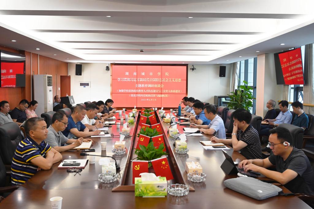 本网讯(通讯员 张振武)为扎实开展学习贯彻习近平新时代中国特色社会主义思想主题教育,高质量完成学校关于主题教育调查研究的具体工作,6月1日、6月2日,校党委书记汤放华在一办公楼一会议室先后主持召开两场调研座谈会。党务部门负责人、各二级党组织班子成员参加会议。