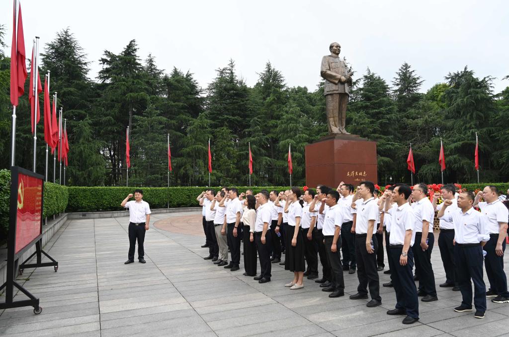 在汤放华的带领下,大家高举右拳,面向鲜红党旗,重温入党誓词,追寻初心,汲取力量。