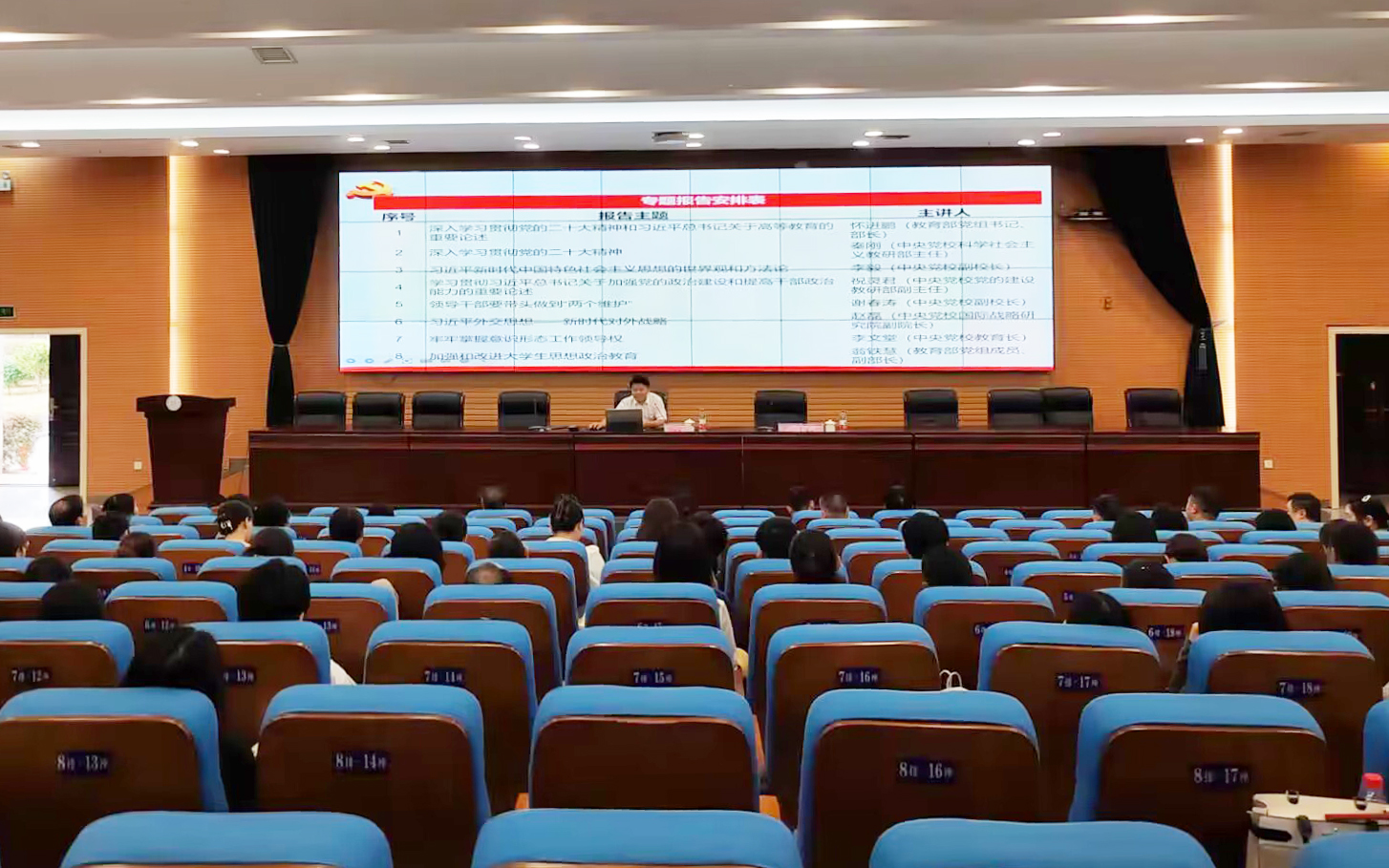 本网讯(供稿:学生工作部)为全面落实立德树人根本任务,进一步加强和提升辅导员队伍专业化、职业化水平,8月28日至30日,学校在图书馆报告厅举办辅导员专题培训班。校党委书记汤放华作专题辅导报告,副校长雷存喜主持。