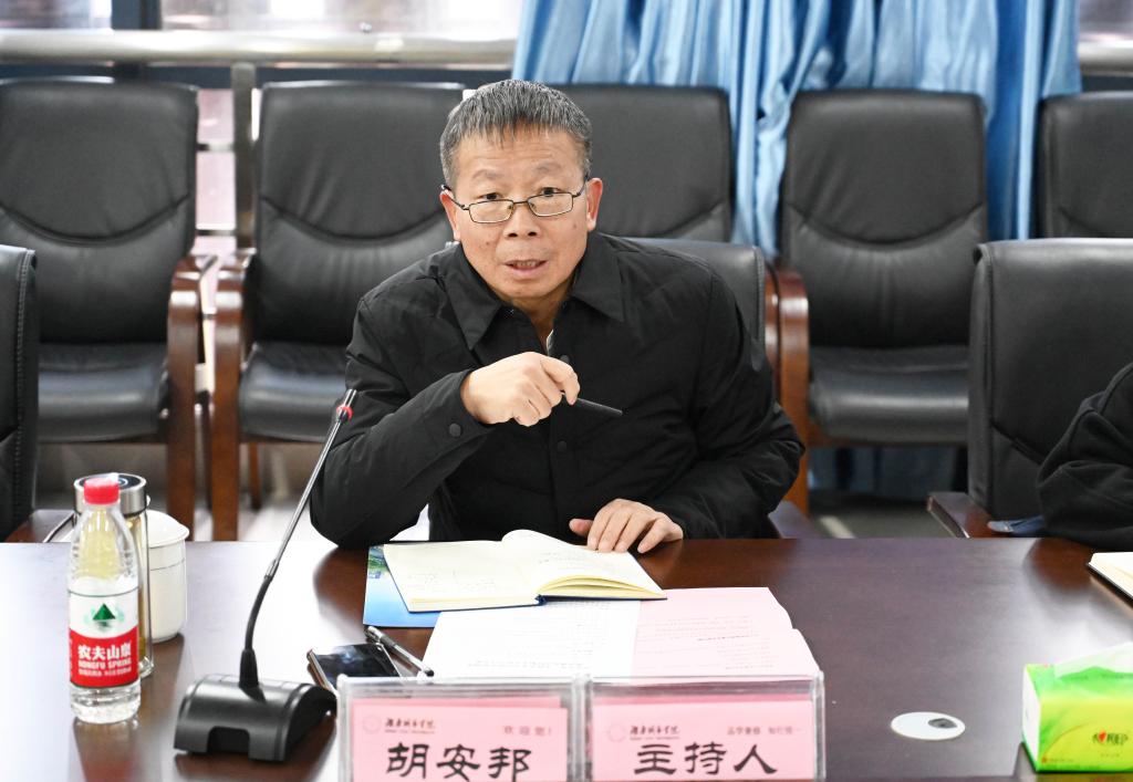 本网讯(记者 博夕)12月26日下午,益阳市委常委、政法委书记胡安邦来我校调研指导校园安全稳定工作,并在建规楼402室召开座谈会。校党委书记汤放华、副校长袁志成出席,益阳市委网信办、市公安局、益阳移动公司、电信公司、联通公司相关负责人以及我校相关部门负责人参加。