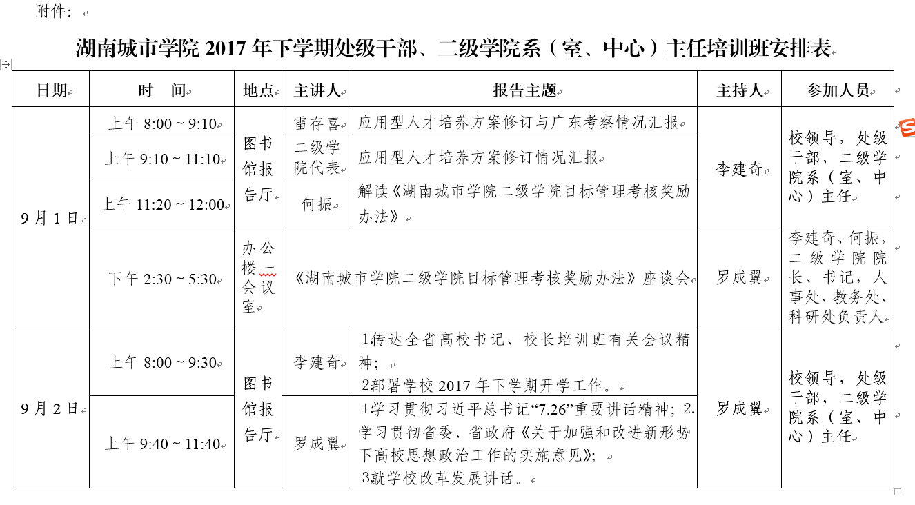 具体培训安排见《好博·(中国)手机网页版2017年下学期处级干部、二级学院系(室、中心)主任培训班安排表》。