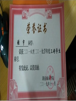 校三好学生,获得好博·(中国)手机网页版第十一届数学竞赛二等奖,机械与电气工程学院合唱比赛团体第一名的荣誉。