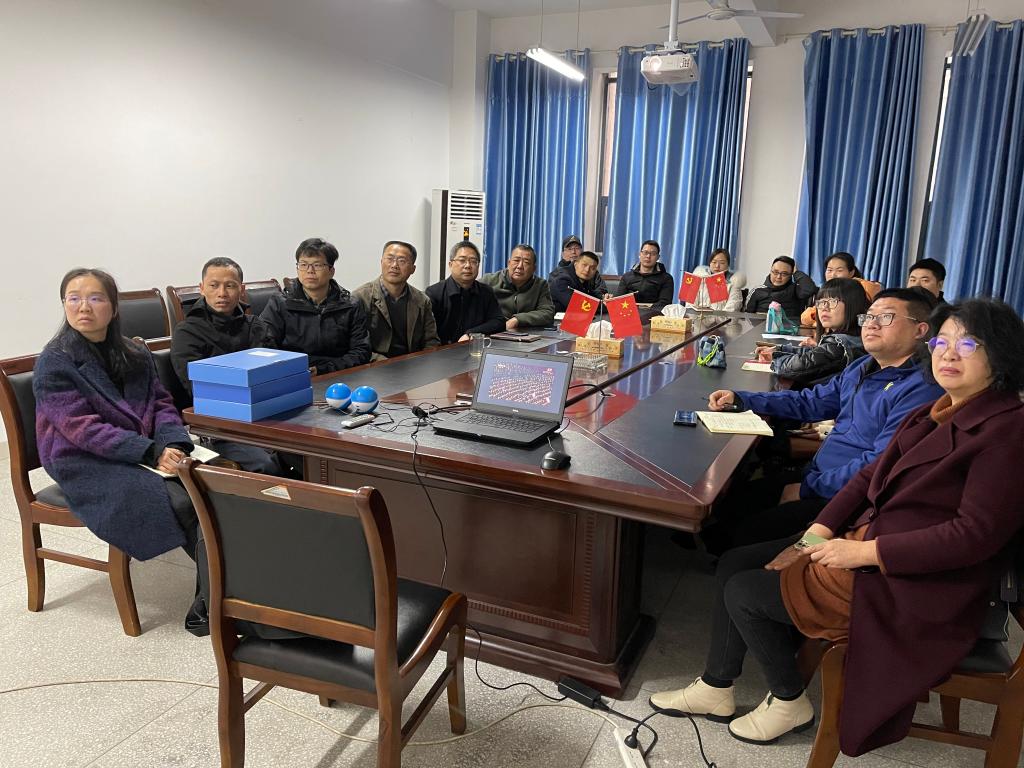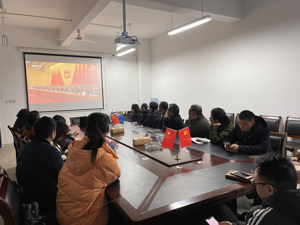学院领导邓曙光、龚彬、刘辉、周理在会议室收看。